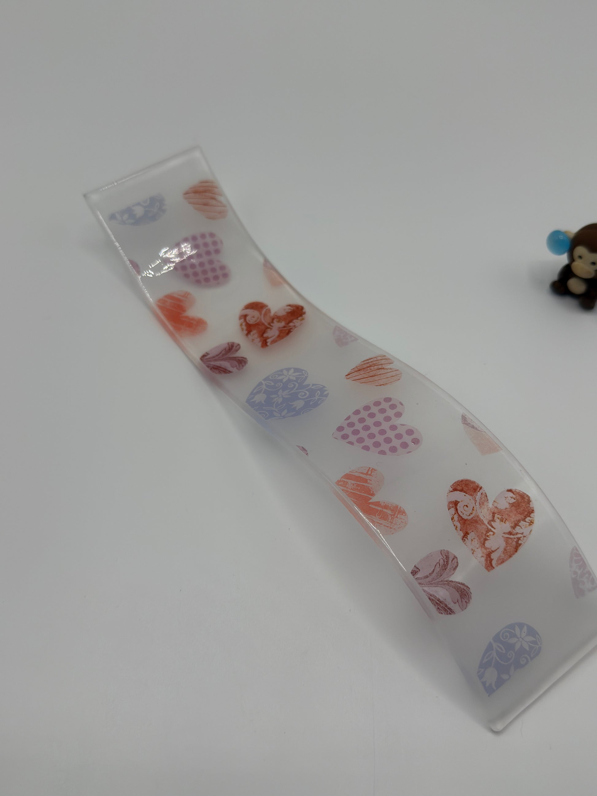 Capture the essence of affection with this stunning Heart Love Wave Glass Fused piece. Each handcrafted design merges flowing wave patterns with a timeless heart motif, creating a mesmerising visual that celebrates love in its most elegant form. Perfect for gifting or personal treasures, this fused glass artwork brings warmth and sentiment to any space.